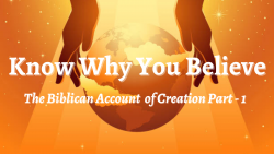 Know Why You Believe, The Biblican Account of Creation- Part 1 April 4, 2022 Rev. Dr. Sam Frye Know Why You Believe Video SHARE ON Twitter Facebook Buffer LinkedIn Pin It Leave a Reply Cancel replyYour email address will not be published. Required fields are marked *Comment * Name * Email * Website Δ Continue Reading Know Why You Believe, God’s Omnipotence in Everyday Living- Part 3 Know Why You Believe, The Biblical Account of Creation-Part 2